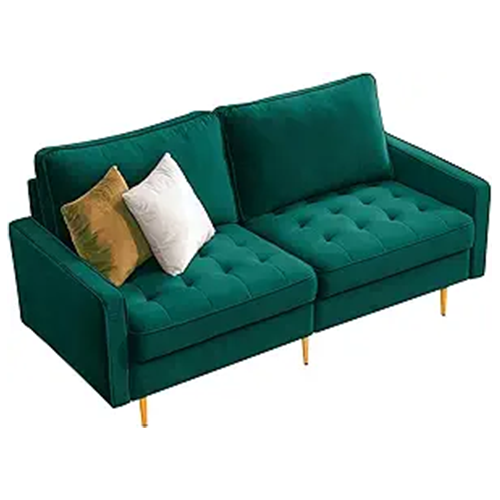 The perfect center of Emerald Couches gravity for your chic mid-century living area. This velvet sofa is 70 inches broad and scaled for a modern metropolitan lifestyle! Perfect for apartment or loft life. Easier to Put Together, The assembly only has to be finished in 4 steps. With the included hardware, it takes just 15 minutes to attach the gold-polished legs to the underside of the sofa. The thick velvet fabric is good for handling spills and is easily cleanable with only a little soap and water.