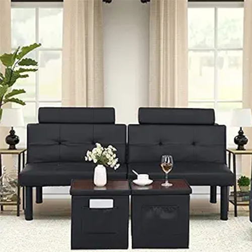 Adjustable Convertible Futon Sofa Set: Black leather futon comes with three different configurations that may be adjusted to meet your needs in a variety of situations. When you want to take a nap or sleep, you simply need to convert the black leather futon angle to 180 degrees so that it can be used as a bed. For example, if you want to watch TV or read in your living room, you may adjust the back rest to 105 degrees or 140 degrees. black leather futon is An excellent option for those who frequently host overnight visitors but do not have a spare bedroom