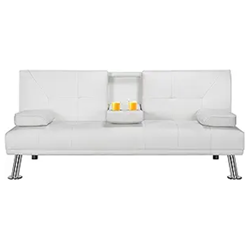 Yaheetech Faux Leather Couch Sofa Bed Convertible Sleeper Sofa with Chrome Metal Legs Daybed with Quick Adjustable Folding for Living Room/Small Apartment/Office, White