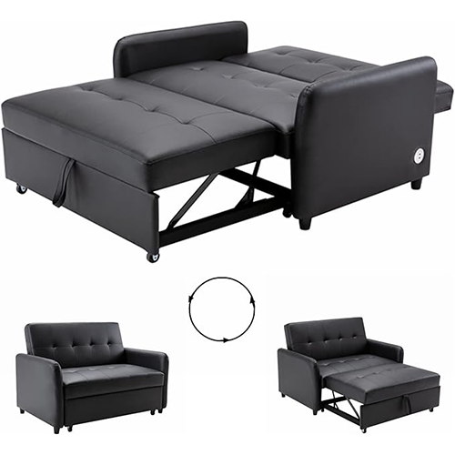 Gynsseh Pull Out Sofa Sleeper, 3-in-1 Adjustable Sleeper Loveseat with Pull Out Bed and Dual USB Ports, Faux Leather Convertible Sleeper Sofa Bed for Small Spaces (S5-Black)