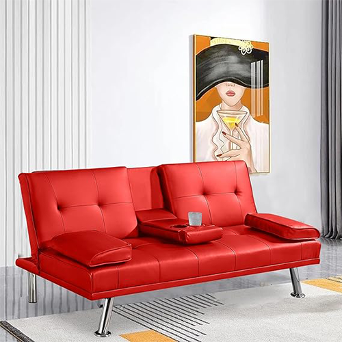 Small Couch Futon Hooseng Sofa Bed Faux Leather Couch, Bed Loveseat Sleeper, Red