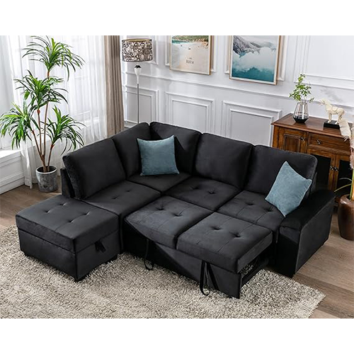 Look Sleek and Current: Taking into account the importance of reducing floor space while still providing ample seats, the design is also flexible enough to fit into tight wall nooks. The structure of this l shaped couch with pull out bed is constructed from strong wood so it can withstand up to 1200 pounds of weight, making it ideal for heavy use for years to come. The combination of high-density foam and a spring-filled seat ensures a pleasant sitting experience.