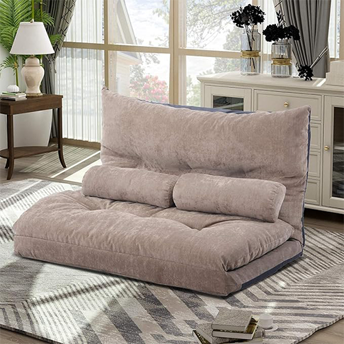 Merax Floor Sofa Bed Adjustable Sleeper Bed Sofa Couches Living Room Furniture (Light Brown)