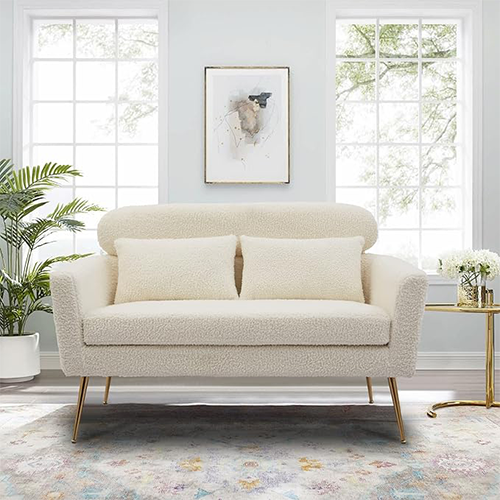 Betoko 51‘’ Loveseat Sofa Small Couch Two Seat Mid Century Modern Sofa with 2 Throw Pillows and Gold Metal Legs for Small Space Office Studio Apartments Bedroom, Light Brown