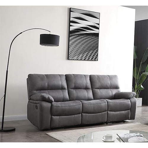 Betsy Furniture offers a contemporary grey three-seater rectangular standard sofa recliner With Taupe Microfiber fabric, pillow top backrest, and armrests, and pocket coil spring seat cushion coated in premium foam, this l-shaped sleeper sofa, microfiber sofa set offers outstanding comfort; have a backrest with heat radiating design to provide comfort.
