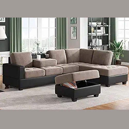 Microfiber Sofa Set, Rivet Ornament L-Shape with Two Cup Holder.