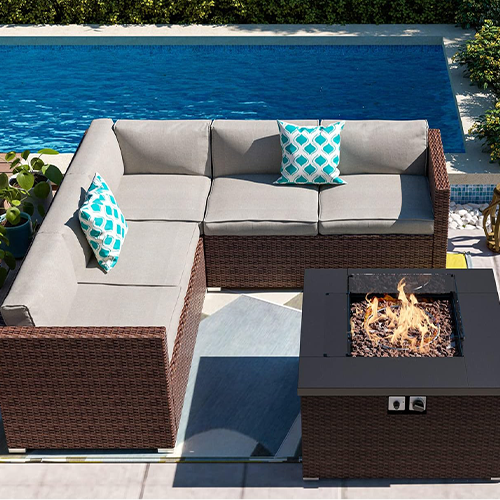 In addition, we provide you with lava rocks that you can use to fill in the space beyond the burner. Imagine having such a nice sensation, it’s amazing! A pit sectional sofa patio furniture set along with a fire pit will serve as an eye-catching focal point in the room design of your home.