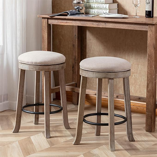 A style that is devoid of clutter and is more rustic this bar stool is constructed out of wood, and it has one cushioned seat that can swivel, four legs made of wood, and one metal footrest with a full ring. Backless wood counter stools are both sophisticated and straightforward in their design, striking the perfect balance.