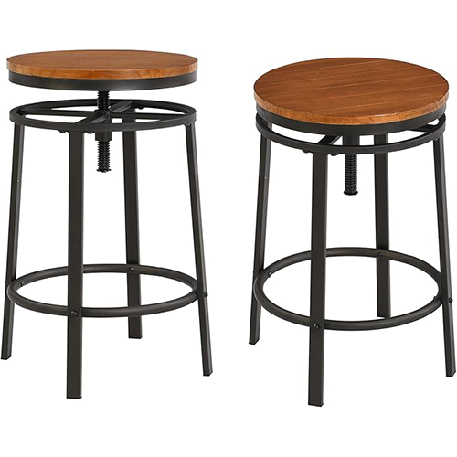Hillsdale Bar Stools O&K FURNITURE 25-29 Inch Adjustable Backless, Wood and Metal Bar Stool Chairs Set of 2