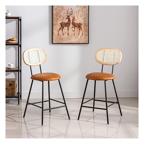 100% Natural Rattan Cane Woven: leather counter height chairs materials are durable and ergonomically engineered for improved body comfort. Combining elegant contemporary curves with classic historical design. Industrial counter stools with stylishly curved round edges. Each piece of organic wood has a distinctive design. 24″ Seat Height Seat Dimensions: 16.1 by 16.1 the clash of the rattan backrest and metal frame gives the eating leather counter height chairs a fresh look. The decor of your room will be immediately improved by this contemporary chair.
