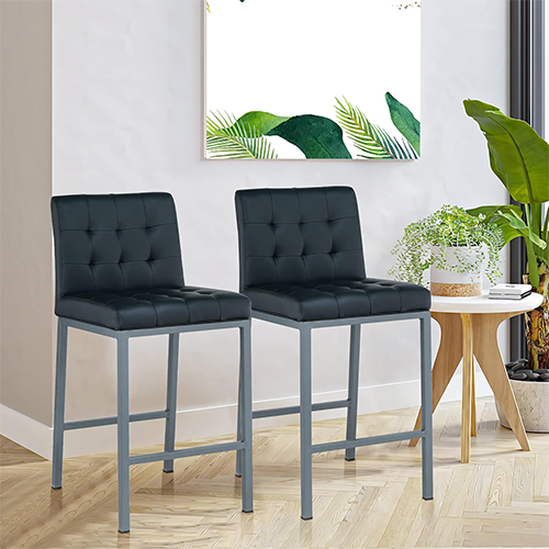 This stylish Black metal counter stools backrest features nail head trim. The Seats and stools are padded. It has a seat height of 24 inches and a footrest for additional support. When choosing a black metal counter stool, think about the style and color of your kitchen’s decor, as well as how comfortable and long-lasting the stool is. A comfortable and useful counter stool made of black metal can complement the sleek and contemporary look of your kitchen.