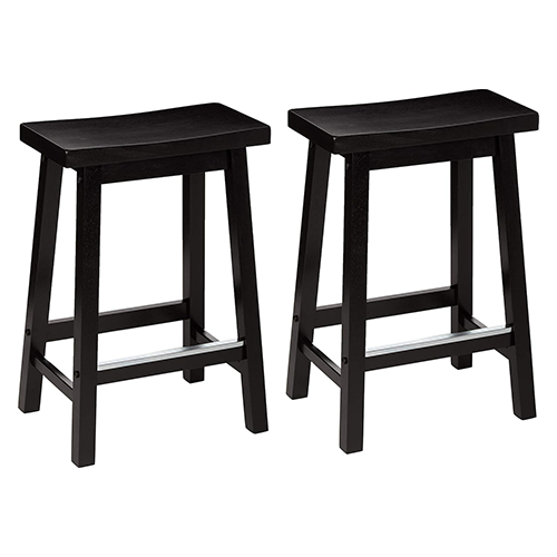 Amazon Basics Solid Wood Saddle-Seat Kitchen Counter-Height Stool - 2-Pack, 24-Inch Height, Black
