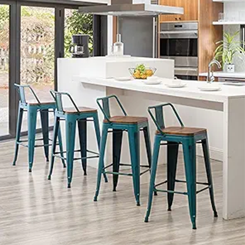 Black Counter Height Stools Andeworld Bar Stools Set Of 4 Metal Barstools With Wooden Seats (26 Inch, Distressed Teal) - Teal Bar Stool