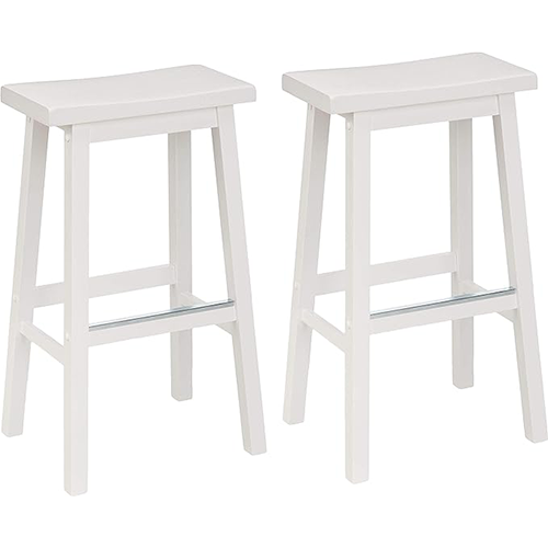 Amazon Basics Solid Wood Saddle-Seat Kitchen Counter Barstool - Set of 2, 29-Inch Height - White