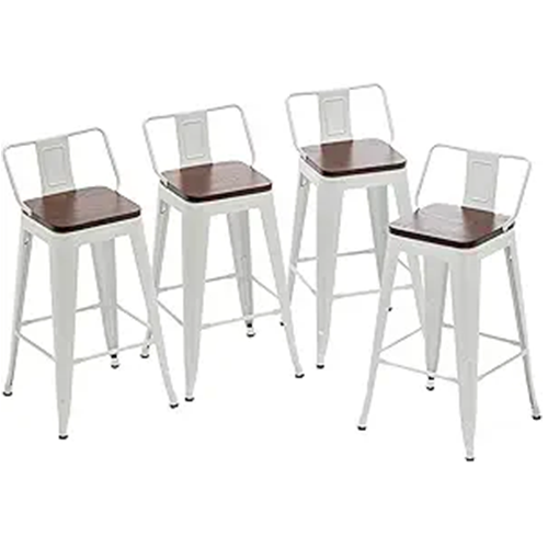 Barstools set of 4, the height from the top of the seat to the floor is 24 inches. It can hold up to 330 lbs. Modern style: these wood and metal industrial farmhouse style stools are great for your kitchen, dining room, restaurant, bistro, coffee shop, or anywhere else. They have a nice mix of modern and vintage styles. Please don’t leave them outside for a long time in the sun and rain, which will make them fade faster. Instead, put them under a roof. Convenient: the low back can be taken off and used without a back. The chairs can be stacked to save space and are easy to carry. 【stable & durable】 The x-brace under the seat and the wood seat make it more stable and long-lasting. Each leg has rubber caps on the bottom that won’t leave marks on your floor. “easy assembly required”: the back and seat need to be put together. (please keep in mind that the short screws are not used to put the seats in place.) If you have any questions about our product, feel free to get in touch with us. We’ll be happy to help. Kitchen stools set of 4, these metal barstools are a great way to add a modern farmhouse touch to your kitchen island, bistro, coffee bar, or entertainment room. Specifications: * package: set of 4 * weight capacity: 330 lbs * seat height: 24 inches, size option is from the seat to the floor. * seat size: 12.2″w*12.2″d square wooden seat. * backrest size: 14.2″w*6.7″h. * you can take the backrest off to use them as bar stools without backs. They can also be stacked to save space. Bar stools have an x-brace under the seat that gives them extra support and stability. * rubber feet caps keep them from sliding and scratching hardwood floors. Best stools for a kitchen island. All-around chairs for restaurants, bistro patios, cafes, gatherings, and cafes. Friendly tips: * when you place your order, please pay attention to the size. * to put in wooden seats, please use the short screws. The long ones will damage the seats. Because of how your computer monitor is set up, the colours might be a little bit different. * after-sales service: we’ll replace it for free or give you your money back if there’s a problem with the quality within 30 days. We’ll also replace it for free if there’s a problem with installation, a broken part, or a missing part within 3 months. If you have any questions about our products, feel free to get in touch with us. We’ll be happy to help.