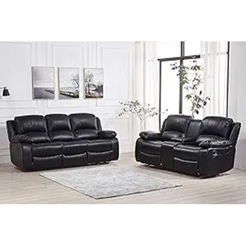 Betsy Furniture 2PC Bonded Leather Recliner Set Living Room Set, Sofa, Loveseat 8018 (Black, Living Room Set 3+2)