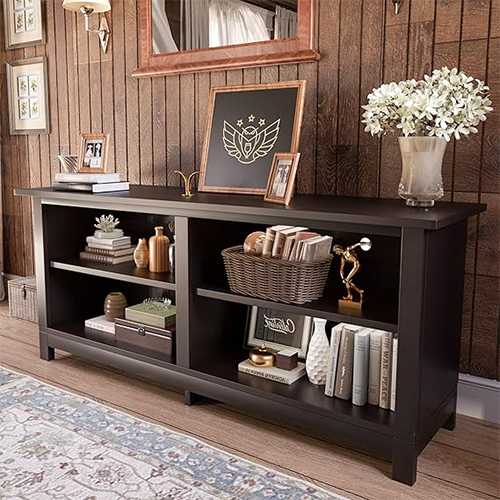 Large Open Storage Space: Featuring an open rustic tv console containing 6 shelves, this 58″ TV stand offers adequate space for your video and audio components in addition to your DVD and game collection. This TV stand also features an open storage design. Additionally, the tabletop of this stylish rustic tv console table is spacious enough to fit a flat-screen television with a maximum screen size of 65 inches.