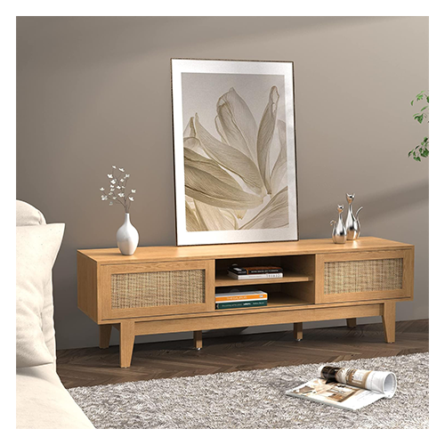 This rattan TV stand is a must-have for fans of the bohemian design. The rattan TV stand eases oppression, and the natural wood grain finish produces an exquisite ambiance. It creates a peaceful atmosphere and is a useful aid whether it is put in the living room or the bedroom.