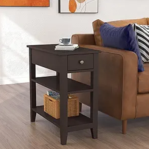 Choochoo Wood End Tables For Living Room, Narrow End Table With Drawer And Shelf