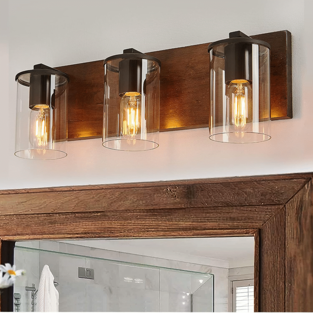 3 Rustic Vanity Lights with Clear Shade, Rustic Bathroom Wall Sconce Lighting