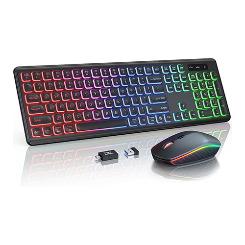 This best light up keyboard and mouse set has a charging keyboard and mouse combination with a rechargeable mouse and keyboard. Long battery life – the provided USB C charging cable can be used to recharge the rechargeable keyboard and mouse. Rechargeable USB-C; A power switch is present on the wireless backlit keyboard and mouse. Utilizing the provided USB-C charging cable, the built-in rechargeable battery can be fully charged in 3 hours.