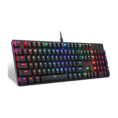 This is the High-quality, robust mechanical gaming Redragon keyboard with an ergonomic design Metal ABS structure and plate-mounted mechanical switches ensure durability even during the heaviest gaming marathons. With 12 multimedia keyboard keys, a non-slip ergonomic, splash-proof design, and a gold-plated high-speed corrosion-free USB connector for a dependable connection, this keyboard has anti-ghosting on all 104 of its keys.