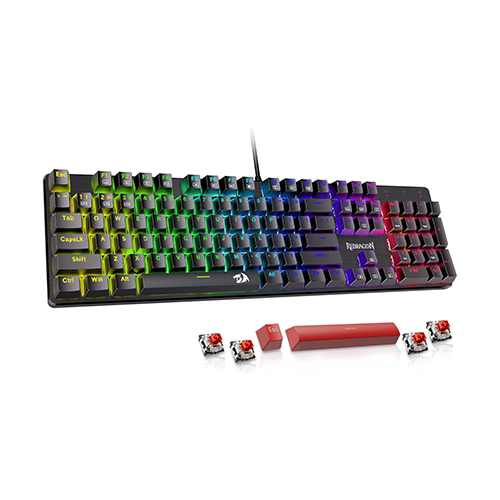Dust-proof mechanical red switches are used on the Redragon Mechanical Gaming Keyboard K535. Linear switches have a quiet click sound, quick action, little resistance, and no tactile bump feeling. Full-sized, Low-Profile Redragon keyboard with 104 Keys