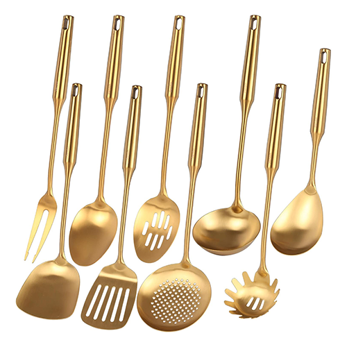 Utensils Gold Kitchen Stainless Steel All Metal Cooking Tools With Meat Fork, Solid Spoon.
