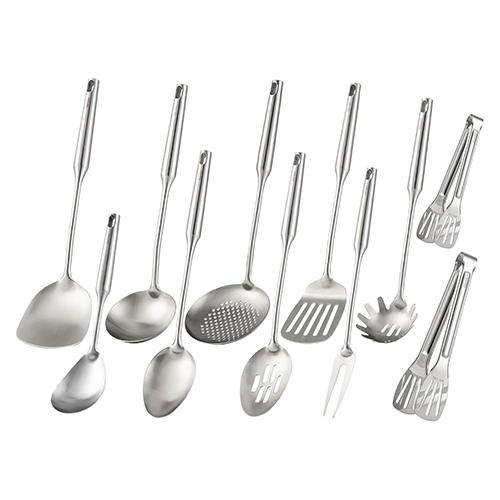 Superb Serving Objects Manufactured of heavy-duty, restaurant-quality 304 for the set of 11. Grade stainless forged in one piece, strong and long-lasting. Special curves and shapes that are suited for a variety of non-stick cookware, Utensils with a delicate silver matte finish. Simple To Use & Ultimate Comfortable: Ergonomic design, ideal weight, great grip, hollow long handle to give high heat resistance, ensure the chef’s hands stay cool in daily use at home or in industrial use. Each blade and spoon is dishwasher safe, making them both simple to clean.