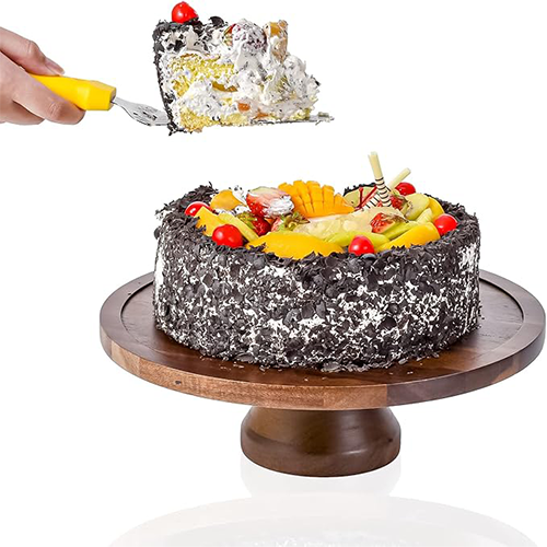 It has perfect height of 2.6 inches that is ideal to display 12-inch cakes, pies, muffins, fruits, sweets and even cheeses. Its top wooden surface plate has a length of 12.6″ and a thickness of 0.6″, giving you enough space to showcase your delights beautifully. Its modern curved design makes it different from other ordinary wooden cake stands. Thick base of the cake stand ensures that you can place any object freely on it without wiggling. While this product is not dishwasher safe, you can maintain its cleanliness simply by wiping it with dry cloth.