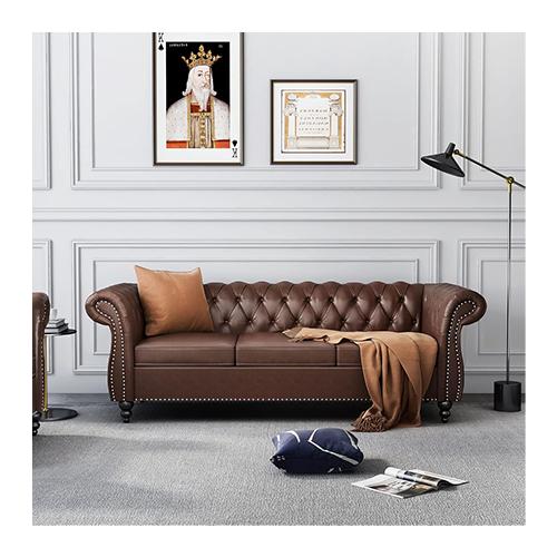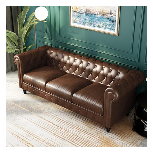 You will love how much your space can transform with the simple addition of this charming sofa. Modern PU tufted couch three-Seater Chesterfield Sofa modern Luxury dark brown leather couch stripe tufting meets stylish fashion on this exquisitely crafted upholstered couch. Comfortable sofa for your home thick, cushy seat, manufactured from excessive nice soft, integrated excessive density sponge, strain lightly dispersed, engineering design, providing you with most snug feeling.
