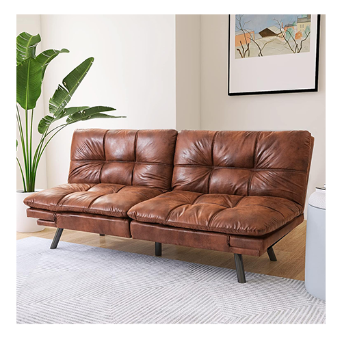 Compared with the opposite sofas, the brand new brown couch will increase the thickness of the reminiscence foam from 2.5 inches to three inches, this means that the brown couch has a extra snug softness, in addition, the couch is blanketed with top class faux leather sleeper sofa and the helps are 6 chrome-plated metallic legs.