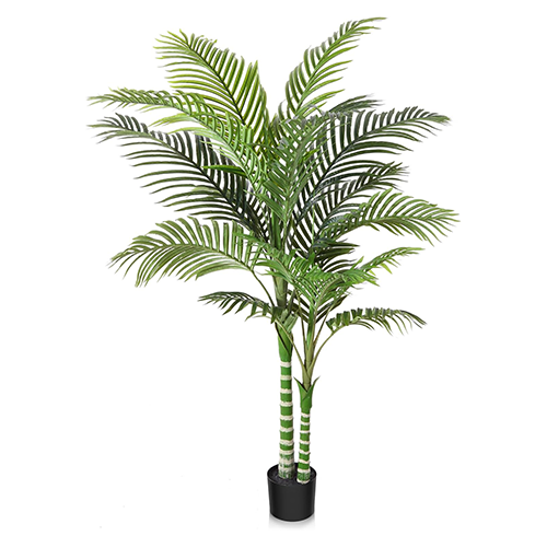 This Palm plants outdoor is sufficiently flexible to be utilized in various settings, including homes, workplaces, and open air spaces like decks and gardens. It can be part of a larger landscaping project or used as a stand-alone plant. Painstakingly created to copy the presence of a genuine areca Palm plants outdoor, looking as near reality as could be expected, ideally suited for any room or office stylistic layout. You’ll get a sense of nature’s presence from this palm tree. All seasons are green. Because Dypsis lutescens has sturdy metal wires inside, you can shape the trunk to your liking without worrying that it will break. This Palm plants outdoor won’t need to be pruned or shaped to keep its height, color, or shape for many years. The premium polyester used in the construction of this artificial tree is long-lasting. The base is solid cement to prevent children and pets from knocking it over. Palm plants outdoor is so simple to clean. Simply clean them with a damp cloth or duster if they become a little dusty. The artificial Areca Palm Tree approximates the black pot is six feet tall. When you take it out of the box, you may need to re-adjust the shape to get the look you want