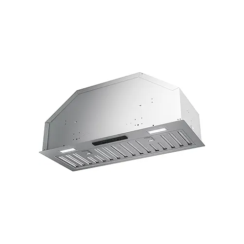 Zephyr AK8100BS 600 CFM range hood power tornado I insert will give your kitchen fan vent a sleek and fashionable appearance. The dual level lumi Light LED lighting in the Tornado I insert casts a cozy glow across your hob. This addition, which goes beneath the kitchen vent hood canopy, offers strength and flexibility in a compact, barely perceptible package. The 600 CFM fan has an upgraded hybrid baffle filter and a high efficiency 3 speed blowers.