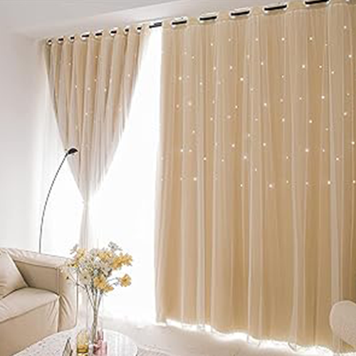 Decor Curtain– Modern solid beige and black living room with sheer tulle overlay and star cut-out design for bedroom, living room, study, kids room, nursery, kitchen, and dining area. A double-layer structure is a terrific way to freshen up any living space.