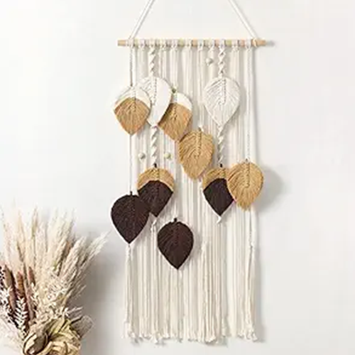 - It is composed of 100% pure cotton cord without any chemical treatments, and it features a macramé leaf and tassel that have been painstakingly hand-crafted. Putting it on the wall will give any area a bohemian feel and is a great way to liven up your home.