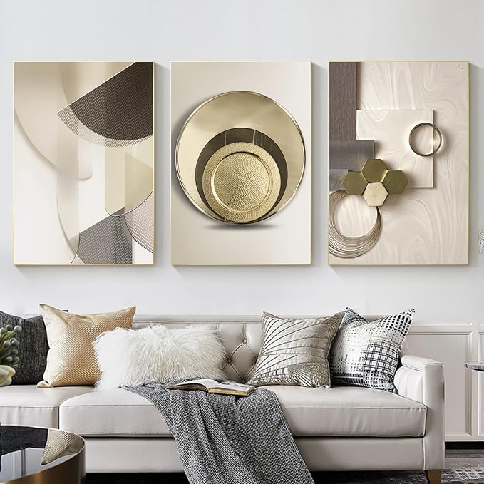Gold Living Room Décor, Geometric Wall Art, Beige Living Room Ideas, Print Art For Office 16x24inchx3pcs No Frame