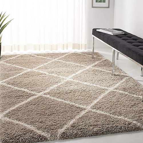Beige Living Room Ideas, Shag Collection 8' X 10' Beige/Ivory SGH281S Modern Diamond Trellis Non-Shedding 2-Inch Thick Area Rug