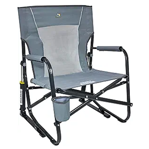 The GCI Outdoor Camping Rocking Chair has patented Spring-Action Rocking Technology for a smooth rocking motion on any outdoor surface. With GCI Outdoor’s unique Eazy-fold Technology, folding a camp chair open and closed has never been simpler. It has padded arm rests, a built-in beverage container, and a handy carry handle. The FirePit Rocker is made of strong, lightweight powder-coated steel, and it can support up to 250 lbs.