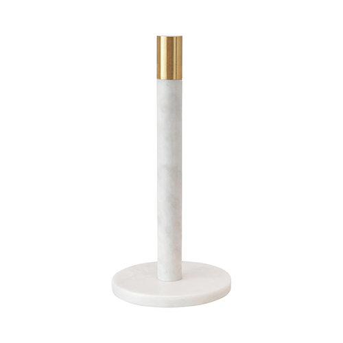 Bloomingville Modern White Paper Towel Holder - Marble Best Paper Towel Holder with Brass Accent Band